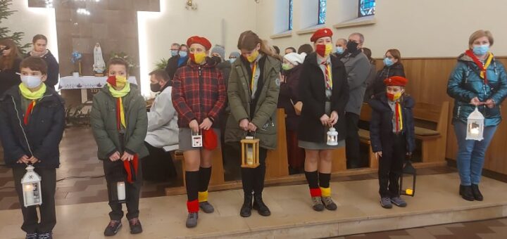 W niedzielę 19.12 o godz. 09:30 harcerze ze Szczepu Żółto-Czerwony Płomień przekazali Betlejemskie Światło Pokoju.